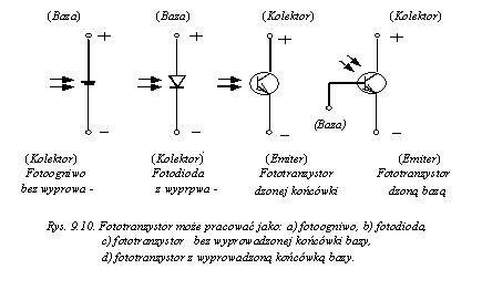 - fototranzystor bez wyprowadzonej końcówki bazy w tym momencie działa jako normalny fototranzystor (rys.9.10c),