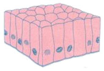- Jednowarstwowy sześcienny: komórki w kształcie sześcianu, z jądrami umieszczonymi centralnie. U ludzi nabłonek ten buduje kanaliki nerkowe i końcowe odcinki gruczołów.