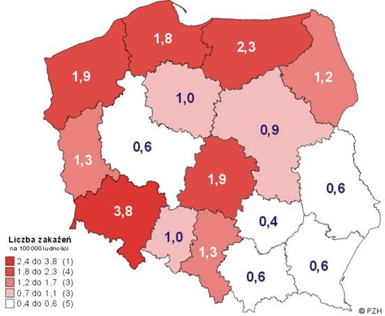 (dane, wykresy i mapy ze strony Instytutu Naukowo-Badawczego Państwowego Zakładu Higieny)