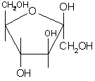 Fruktoza to kolejny cukier posiadający sześć atomów węgla w swojej cząsteczce. Jest ona monosacharydem o wzorze sumarycznym C6H12O6. Cząsteczki fruktozy mogą przyjmować postać łańcuchową z pięcioma grupami hydroksylowymi i wolna grupa ketonową, jak tez strukturę pierścieniową, pięcioczłonową, w której grupa ketonowa jest unieczynniona. Fruktoza zaliczana jest do ketoheksoz. Wzory strukturalne fruktozy pokazano niżej: