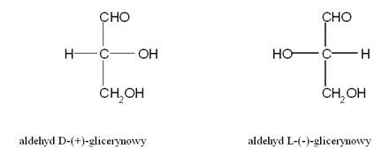 Aldehyd glicerynowy (aldotrioza) tworzy 2 izomery optyczne (enancjomery):