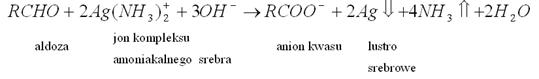 - Węglowodany zawierające grupę aldehydową ulegają reakcji z odczynnikiem Tollensa według poniższego równania reakcji:
