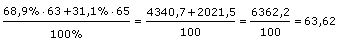 (31,1%), zatem jej średnia masa atomowa wynosi: