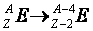 - Jądra o dużej masie rozpadają się na mniejsze, bardziej trwałe, czemu towarzyszy promieniowanie α (jądra helu). Według reguły przesunięć Sodde'go - Fajansa przemiana ta zachodzi: