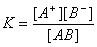 Jest ona wyrażona stosunkiem iloczynu określającego stężenie jonów np. [A+] [B-] do stężenia cząsteczek niezdysocjowanych [AB]: