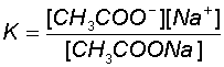 Stała dysocjacji dotycząca reakcji odwracalnych w stanie równowagi, jest to stosunek iloczynu stężeń (są to zazwyczaj stężenia molowe) jonów (produktów) do stężenia cząsteczek nie zdysocjowanych (substratów) w stanie równowagi roztworu elektrolitu. Przykładowo dla reakcji dysocjacji octanu sodu, której równanie jest podane wyżej, stałą dysocjacji wynosi: