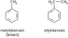 Nazwy węglowodorów aromatycznych tworzy się poprzez określenie podstawników benzenu i nazwy benzen lub zwyczajowo.