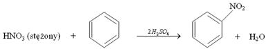 - nitrowanie zachodzące pod wpływem stężonych kwasów azotowego (V) i siarkowego (VI):