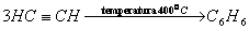 - w reakcji trimeryzacji acetylenu przebiegającego zgodnie z równaniem reakcji:
