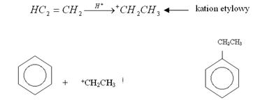 jest karbokatinem, który przyłączy się do benzenu: