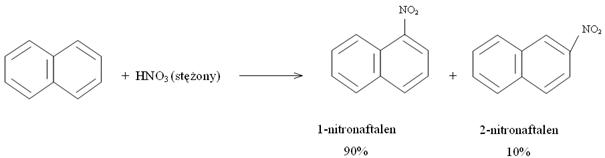 - bromowanie z utworzeniem 1-bromonaftalenu i 2-bromonaftalenu