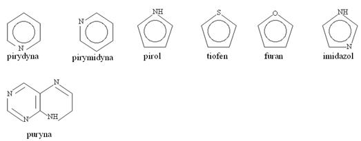 Przykłady związków heterocyklicznych: