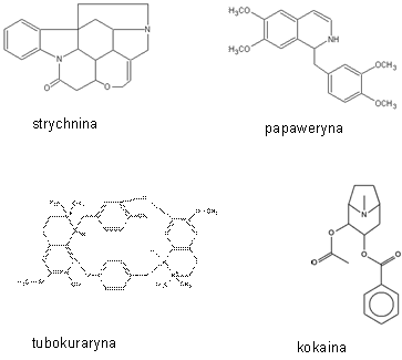 - papaweryna, narkotyna, składniki opium; tubokuraryna, składnik kurary