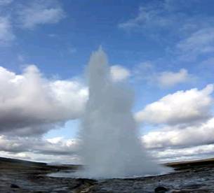 Część takiej wody może wydostawać się na powierzchnię naszej planety tworząc tzw. gejzery widoczne na zdjęciu poniżej.
