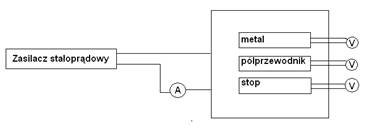 Do badania oporu właściwego używamy układu pomiarowego przedstawionego na rysunku poniżej: