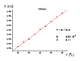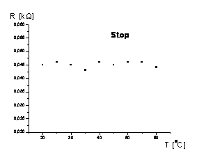 Widać, że opór elektryczny stopu nie zmienia się prawie w ogóle, a niewielkie różnice wynikają z niedokładności pomiarowych. Opór elektryczny stopu jest znacznie mniejszy niż opór metalu i półprzewodnika - stop jest znacznie lepszym przewodnikiem.
