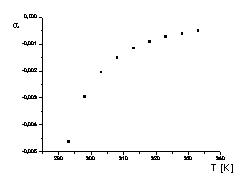 Kolejną rzeczą, jaką policzyliśmy dla półprzewodnika, jest współczynnik zamian oporu z temperaturą. Współczynnik ten zmienia się wraz z temperaturą, dlatego wykres R(T) dla półprzewodnika nie jest linią prostą. Współczynnik ten policzyliśmy ze wzoru a = -B/T2. Wyniki obliczeń zamieściliśmy w tabeli: