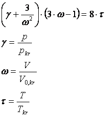 γ, ω, τ - zredukowane parametry ciśnienia, objętości i temperatury.