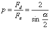 Przekładnia klina, czyli zysk na sile wyraża się wzorem: