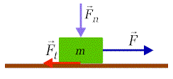 Ciało to obdarzone jest masą m i pod wpływem działania siły grawitacji działa siłą nacisku Fn na powierzchnię. Gdy przyłożymy do naszego ciała siłę F, równoległą do powierzchni, powstanie siła tarcia Ft skierowana przeciwnie do siły F. I jeśli siła F jest mniejsza od powstałej siły tarcia Ft to ciało pozostaje w spoczynku. Widoczne tu tarcie działające na ciało nazywamy tarciem statycznym. Tarcie to posiada pewną swoją graniczną wartość FS. Możemy zatem zapisać warunek, na to aby ciało pozostawało w spoczynku: