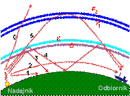 Fale radiowe to promieniowanie elektromagnetyczne, którego długości fal są większe niż 0,1 mm. Dzieli się je na kilka rodzajów ze względu na zakres częstotliwości. Fale radiowe powstają w wyniku działania elektrycznych obwodów drgających, które to swoją energię przekazują antenie, która z kolei wysyła fale radiowe w przestrzeń. Fale radiowe można także podzielić na kilka rodzajów, ze względu na to w jakim środowisku się one rozchodzą. I tak mamy do czynienia z falami przyziemnymi, falami troposferycznymi, falami jonosferycznymi i falami kosmicznymi. Jak wiemy, fale podlegają także działaniu wszelkich zjawisk dla nich charakterystycznych. I w zależności od tego jaka jest długość danej fali, może ona podlegać działaniu dyfrakcji, interferencji, odbiciu, czy załamaniu na granicy dwóch ośrodków. Bardzo duży wpływ na propagację i rejestrację fal radiowy ma jonosfera, czyli górna warstwa atmosfery. Warstwa ta jak sama nazwa wskazuje jest poddawana nieustannemu procesowi jonizacji, które wywołuje w niej przychodzące z przestrzeni kosmicznej promieniowanie ultrafioletowe i rentgenowskie. Dodatkowo jonosferę można także podzielić na kilka innych warstw (patrz rysunek obok). Jak widać na rysunku mamy do czynienia z 4 warstwami jonosfery: D, E, F1, F2. Różnego rodzaju fale, czyli fale o różnych częstotliwościach, będą inaczej zachowywały się po dotarciu do granic określonych warstw. Poszczególne rodzaje fal oznaczono na rysunku w następujący sposób: