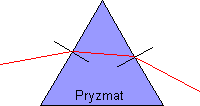 Ważnym przyrządem do badania rozszczepienia światła jest pryzmat. Pryzmat jest bryłą szkła, która powoduje iż promień świetlny po przejściu przez niego ulega podwójnemu załamaniu. Jeśli promień ten jest monochromatyczny, czyli jest światłem o jednej określonej długości fali to gdy pada na powierzchnie pryzmatu ulega załamaniu na powierzchni oddzielającej pryzmat od otoczenia (zgodnie z prawem załamania. Po przejściu przez warstwę szkła pryzmatu znowu ulega załamaniu na powierzchni oddzielającej pryzmat od otoczenia. Ilustruje to rysunek obok.