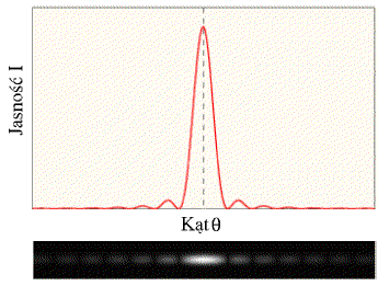 gdzie d - szerokość szczeliny, λ - długość fali światła padającego.