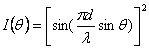 W wyniku dokładniejszej analizy tegoż zjawiska można wyznaczyć zależność natężenia światła I od kąta odchylenia θ od pierwotnego kierunku wiązki: