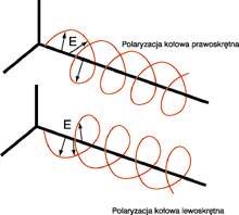 Jeżeli płaszczyzna drgań wektora pola elektrycznego lub pola magnetycznego nie zmienia się w czasie propagacji światła to mówimy, że światło jest spolaryzowane liniowo. Jeżeli natomiast zmienia się ona w sposób losowy to takie światło nazywane niespolaryzowanym. Powszechne źródła światła, które otaczają nas w życiu codziennym (takie jak Słońce, czy żarówka) emitują światło niespolaryzowane. Możliwe są także inne typy polaryzacji, takie jak polaryzacja kołowa czy eliptyczna. W takich przypadkach wektora pola elektrycznego w czasie drgań obraca się o wokół kierunku propagacji fali. Na poniższym rysunku przedstawiono polaryzację kołową, prawo i lewoskrętną.