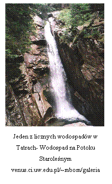 Cieki wodne w Tatrach nie są za długie za to są niezwykle wartkie. Najdłuższy ma długość jedynie 13 km i nosi nazwę Suchej Wody. Cały masyw tatrzański jest odwadniany przez rzeki należące do dorzecza Dunajca. Maksymalną wartość odpływu rzeki w Tatrach Wysokich osiągają w czerwcu, gdyż posiadają ustrój śnieżny górski. Każdego roku rzeki tatrzańskie odprowadzają ok. 70 % wody opadowej z tego obszaru, co jest najwyższym wskaźnikiem w naszym kraju. Urozmaicenie rzeźby tatrzańskiej przyczyniło się do powstania tutaj licznych wodospadów, a najsłynniejszymi z nich są Wodogrzmoty Mickiewicza, Wielka Siklawa oraz Siklawica. Na obszarze tatrzańskim jest również bardzo wiele jezior polodowcowych, których liczba wynosi 43 a ich łączna powierzchnia to blisko 160 ha. Najwięcej ich zlokalizowanych jest na obszarze Tatr Wysokich na wysokości ponad 1600 m n.p.m. Jeziora znajdujące się najniżej nie ulegają zlodowaceniu przez 6 miesięcy natomiast te położone w wyższych partiach gór są zamarznięte prawie przez cały rok, dlatego często używana jest nazwa Zamarzły Staw. Jeziora w Tatrach noszą nazwę "stawów". Do największych tatrzańskich stawów zaliczamy Morskie Oko (34,9 ha i 50,8 m głębokości) i Wielki Staw Polski (34,4 ha i 79,3 m głębokości). Jeziora w Tatrach znajdują się we wczesnym stadium rozwoju tzw. jeziora oligotroficzne, a więc są ubogie w życie biologiczne, co przyczynia się do ich dużej przezroczystości. Skutkiem zróżnicowanej budowy geologicznej na tym obszarze występuje tutaj specyficzny układ podziemnej sieci hydrograficznej. Tatry Zachodnie zbudowane z wapieni i dolomitów zasobne są w wody krasowe. Źródła tych wód noszą nazwę wywierzysk, które stanowią najwydajniejsze źródła w Tatrach. Oprócz tego spotykamy źródła skalne wypływające z utworów krystalicznych oraz źródła pokrywowe powstające w utworach zwietrzelinowych. W Jaszczurówce występują również cieplice, których temperatura sięga 18 0C, czym nie mogą się wprawdzie równać z islandzkimi gejzerami, ale i tak posiadają walory lecznicze.