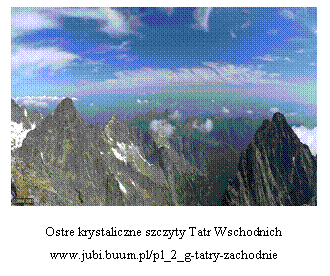 Tatry odznaczają się piętrowym klimatem górskim kształtowanym przez masy powietrza polarnomorskiego (65% wpływu), polarnokontynentalnego (26% wpływu, wywołuje jesienne i zimowe inwersje termiczne), arktycznego (6% wpływu) oraz zwrotnikowego (3% wpływu). Tatry odznaczają się największym promieniowaniem słonecznym w naszym kraju, gdyż występuje tutaj cieńsza warstwa atmosfery oraz jest ona w mniejszym stopniu zanieczyszczona. Pod względem termicznym charakterystyczną cechą obszarów górskich jest pionowy gradient termiczny- spadek temperatury następuje przy wzroście wysokości. Skutkiem tego zjawiska jest wyróżnianie w górach pięter klimatycznych. Na wysokości 1500m n.p.m. średnia temperatura stycznia wynosi -70 C natomiast lipca 11 0 C. W Tatrach często występują duże dobowe wahania termiczne oraz zjawiska inwersji temperatury. Dominują na tym obszarze wiatry wiejące z zachodu i południa. Średnie prędkości wiatrów wzrastają wraz ze wzrostem wysokości. Charakterystycznym wiatrem dla tego obszaru jest halny będący ciepłym, suchym i porywistym wiatrem górskim typu fenowego. Rozkład rocznych sum opadów również jest determinowany wysokością bezwzględną. W Kuźnicach wynoszą one ok. 1000 mm natomiast na Kasprowym Wierchu aż 1850 mm. Granica wiecznych śniegów znajduje się w przybliżeniu na wysokości 2300 m.n.p.m. W Tatrach nie występują jednak lodowce, gdyż nie jest tutaj spełniony warunek orograficzny do ich utworzenia się - brak wystarczająco dużych form wklęsłych terenu na tych wysokościach. Okres zalegania pokrywy śnieżnej w pobliżu Kasprowego Wierchu wynosi średnio 240 dni. Kolejnym elementem meteorologicznym ściśle związanym ze zmianami wysokości jest ciśnienie atmosferyczne. Związek ten określa pionowy gradient baryczny zgodnie z którym ciśnienie maleje wraz ze wzrostem wysokości. Na Kasprowym Wierchu (796 hPa) ciśnienie atmosferyczne jest o ok. 20% niższe w stosunku do tzw. ciśnienia normalnego mierzonego na poziomie morza.