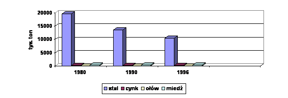 Z wykresu wynika, że wielkość produkcji hutnictwa żelaza systematycznie obniża się, choć nadal pozostaje ono dominującą gałęzią polskiego hutnictwa. Produkcja hutnictwa metali nieżelaznych ma natomiast niewielkie znaczenie, przy czym największa role odgrywa produkcja miedzi.
