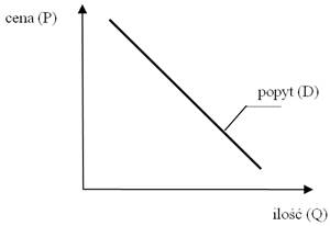 Dla większości dóbr na rynku zmiana ceny wpływa na wielkość popytu. Zgodnie z prawem popytu wielkości te są odwrotnie proporcjonalne. Oznacza to, że wzrost ceny produktu powoduje spadek wielkości popytu na niego, zaś spadek ceny wywołuje zwiększenie wielkości popytu. Ilustruje to krzywa popytu, która jest funkcją malejącą ceny (na rysunku poniżej).