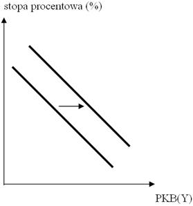 - zwiększenie wydatków kraju powoduje wzrost Produktu Krajowego Brutto przez efekt mnożnikowy; jeśli Produkt Krajowy Brutto zwiększa się, krzywa IS dąży w prawą stronę i odwrotnie, jeśli natomiast wydatki państwa spadną, to krzywa IS podąży w lewą stronę