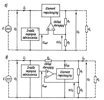 b. Stabilizator równoległy, którego element regulacyjny połączony jest równolegle z obciążeniem.