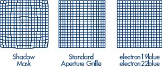 Maska zwykłego kineskopu posiada kształt niewielkiego wycinka powierzchni sferycznej o dużym promieniu. Powoduje to zniekształcenie obrazu zwane pod nazwą rybiego oka. Zwykły kineskop z maską szczelinową przypomina swoim kształtem niewielki wycinek cylindrycznej powierzchni, przez co redukowane są pionowe zniekształcenia, niestety zniekształcenia poziome pozostają bez zmian. Zniekształcenia tego typu zostały zupełnie zniwelowane w monitorach elektronblue, dzięki zastosowaniu w 100% płaskiego kineskopu Diamondtron. Obraz uzyskany na ekranie monitora jest zatem idealną kopią tego co widzimy na kartce papieru. Poniższy rysunek przedstawia maski zwykłego monitor, monitora cylindrycznego oraz monitora electronblue.