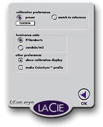 W czasie kalibracji monitorów Lacie elektron22blue lub electron19blue, obsługa kalibracji sprzętowej poprzez kalibrator blue eye jest możliwa dzięki zastosowaniu odpowiedniego kabla wideo, który jest wyposażony w złącze USB. Na monitorze próbki wyświetlanych przez sterownik blue eye, znajdujący się w komputerze Macintosh, kolorów mają znane wartości. Kalibrator mierzy kolor wyświetlany przez monitor, a następnie jego oprogramowanie korzysta ze zmierzonych wartości przy obliczaniu błędu w kolorach wyświetlanych na ekranie monitora. Kolejnym krokiem jest dokonanie regulacji niebieskiego, zielonego oraz czerwonego działa elektronowego znajdującego się wewnątrz monitora. Następny etap to ponowienie pomiaru identycznych co poprzednio próbek kolorów, aby stworzyć profil ColorSync, jeśli tak skonfigurowano system.