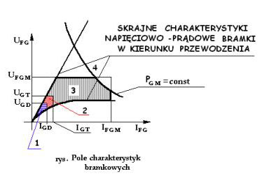 Powyższa charakterystyka przedstawiona jest pod postacią zamkniętej powierzchni, którą ograniczają swoimi wykresami dwa skrajne przebiegi określonego typu tyrystora. Powierzchnia ta obejmuje swoim obszarem wszystkie egzemplarze tyrystora danego typu. W polu charakterystyk bramkowych można wyróżnić następujące obszary: