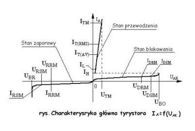 - UTM - maksymalne napięcie przewodzenia, które jest ustalane na głównej charakterystyce przez prąd ITM.