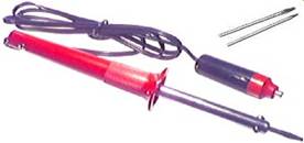 O ile lutownica transformatorowa wystarcz w domowych zastosowaniach, zapalony elektronik - amator powinien rozważyć zakup nieco droższej lutownicy grzałkowej. Lutownicą tego typu można posługiwać się jak długopisem, przez co możliwe jest lutowanie dosyć skomplikowanych układów elektronicznych. Przykładowa lutownica grzałkowa jest przedstawiona na rysunku obok. Pracuje ona przy napięciu 12V, pobiera 30W mocy. Grot lutowniczy w razie zużycia wystarczy wymienić, bez potrzeby kupowania nowej lutownicy.