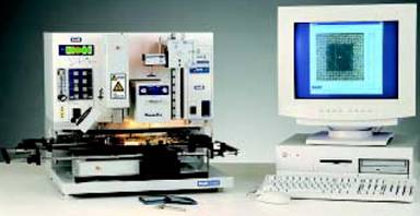 Obok na zdjęciu widzimy również lutownicę. Nie jest to zwykła lutownica dostępna w sklepach, urządzenie to jest bowiem specjalnie przygotowane do wykonywania połączeń o niezwykłej precyzji. Sterowany za pomocą komputera system umożliwia precyzyjne pozycjonowanie grota lutowniczego z dokładnością sięgającą nawet 25 µm. Cały proces lutowania jest obrazowany na bieżąco na monitorze