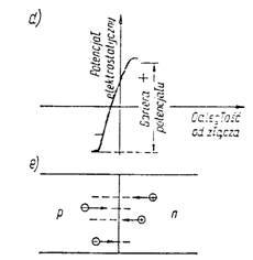 W obszarze złącza, w wyniku istnienia ładunku przestrzennego o przeciwnym potencjale, indukuje się pole elektryczne i powstaje bariera potencjału. Powstałe pole elektryczne przeciwdziała dyfuzji nośników większościowych powyżej pewnego poziomu, natomiast zwiększa przepływ nosników mniejszościowych, czyli elektronów swobodnych z obszaru typu p do obszaru typu n, oraz dziur z obszaru typu n do obszaru typu p. Rysunek bariery potencjału jest przedstawiony poniżej.