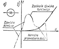 Dioda tunelowa jest dioda półprzewodnikową, w której dzięki bardzo dużej koncentracji domieszek, wytworzona zostaje niezwykle wąska bariera potencjału, która pozwala na zaistnienie zjawiska przejścia tunelowego przez wspomnianą barierę. Analizując charakterystykę prądowo - napięciową diody tunelowej, można zauważyć gałąź, która odpowiada ujemnej rezystancji dynamicznej. Rezystancja jest ujemna ponieważ przy dodatnim wzroście napięcia mamy ujemny przyrost prądu. Przejście elektronów przez barierę potencjału występuje zarówno w przypadku polaryzacji wstecznej, jak również w przypadku małych napięć polaryzujących dodatnio. Przy dalszym zwiększaniu napięcia, można zaobserwować stopniowy zanik przechodzenia elektronów przez barierę potencjału, z powodu małego pola elektrycznego. Dioda tunelowa wzięła swoją nazwę z fizycznej interpretacji zjawisk, które zachodzą w złączu. Elektrony nie mogą bowiem w normalny sposób przejść powyżej bariery potencjału, przechodzą one "tunelem" poniżej bariery. Diody tunelowe są powszechnie stosowane we wzmacniaczach wysokiej częstotliwości.