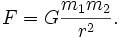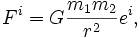 gdzie: G - stała grawitacji, m1,m2 - masy ciał, x - wektor łączący środki mas obu ciał, a r jest długością tego wektora, e^i=frac{x^i}{r} jest wektorem jednostkowym (ee = 1) łączącym środki mas obu ciał. Siła F = Fiei jest wektorem a jej wartość (długość tego wektora F = Fe) jest równa: