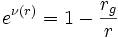 gdzie r_g jest promieniem grawitacyjnym definiującym rozmiar horyzontu zdarzeń czarnej dziury.