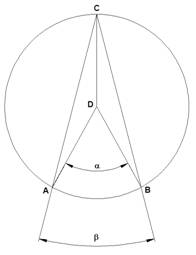 Okrąg ma środek w punkcie D, natomiast R jest promieniem okręgu. Stąd mamy zależności:
