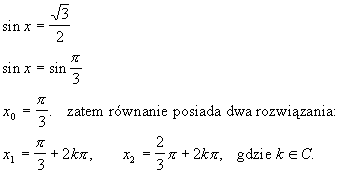 Poniżej zostaną przedstawione rozwiązania elementarnych równań trygonometrycznych.