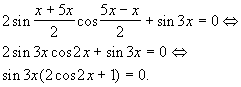 Korzystamy ze wzoru: suma funkcji trygonometrycznych, dodajemy:
