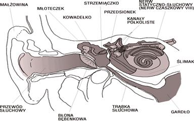 - przewodzeniowy dotyczy uszkodzeń ucha zewnętrznego i środkowego;