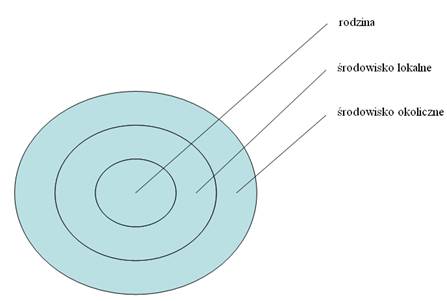 Schemat ten ukazuje jak ważne w procesie socjalizacji i wychowania jest środowisko lokalne przyznając oczywiście zupełne pierwszeństwo rodzinie. Istnieje pewna spirala w rozwoju człowieka. Rozpoczyna on w rodzinie i nigdy z niej nie wychodzi, już zawsze będzie niósł, jakby bagaż, to wszystko czego się tu nauczył, co doświadczył,